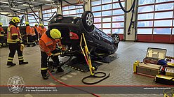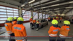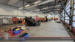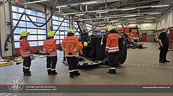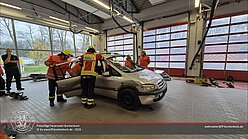 Ab Mittag ging die Fortbildung in den Praxisteil über. Hierfür standen drei Unfallfahrzeuge in der Fahrzeughalle bereit, an denen die Gruppen verschiedene Vorgehensweisen, Einsatzmöglichkeiten und -grenzen von technischen Gerätschaften sowie unterschiedliche Einsatzlagen erproben konnten. Der Nachmittag gestaltete sich sehr kurzweilig und am Ende blieben drei zerlegte „Schrottfahrzeuge“ und viele zufriedene Gesichter in der Fahrzeughalle übrig.